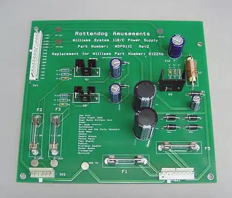 WDP011C – Power Supply compatible with most Williams System 11B and all Williams System 11C alphanumeric pinball games. The original power supply that this board replaces is Williams part number D-12246-xxx.
